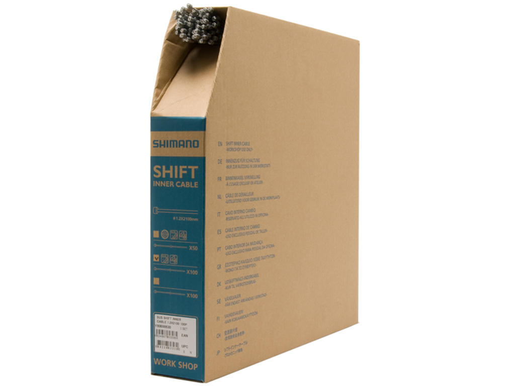 Shimanos bremsewirer til landevejs- og sportscykler fås her i en kasse med 100 stk. Du risikerer derfor ikke at løbe tør lige f…
