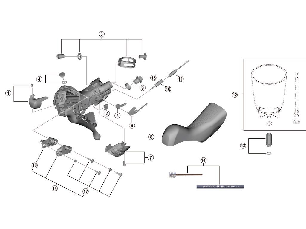 Dæksel og skrue til Shimano Dura Ace højre skifte- og bremsegreb model ST-R9120, som hører til gruppen med 2 x 11 gear. Specifi…